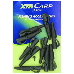 Najnowszy system samowypinający z łagodnie wyprofilowanym ramieniem,ułatwia wypięcie ciężarka tkwiącego w "zaczepie". Umożliwia także szybką i łatwą wymianę ciężarka.Bezpieczny klips z bocznym bolcem, pozwala na stosowanie różnej wielkości krętlików, bolec przytrzymuje oczko krętlika tak, aby zestaw mógł zgubić ciężarek bez uszkodzenia żyłki głównej.Idealny klips do łowienia w kolkach i twardych zaczepach.Pozwala na błyskawiczną wymianę ciężarków.Siłę zwolnienia ołowiu można regulować poprzez różne ustawienia łącznika gumowego.Bezpieczny klips do konstrukcji samo zacinających zestawów karpiowych.Klips jest wyposażony w blokadę dzięki której można na sztywno spiąć zestaw z krętlikiem co dodatkowo poprawia efekt samozacięcia.