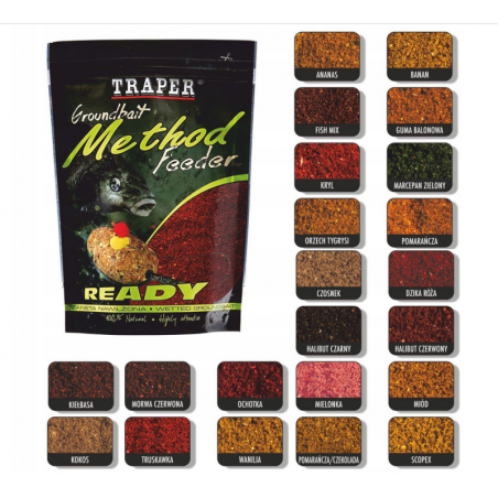 Nawilżona zanęta, gotowa do bezpośredniego użycia. Zanęta wykonana na bazie najwyższej jakości składników naturalnych, przetworzonych termicznie. Nasączona ekstraktem z roślin oleistych. Dzięki doskonale dobranej konsystencji i kleistości z łatwością daje się formować i zastosować do techniki method feeder (łowienia z koszyczkiem zanętowym). Doskonała także do zanęcania łowiska z uformowanych kul zanętowych.
